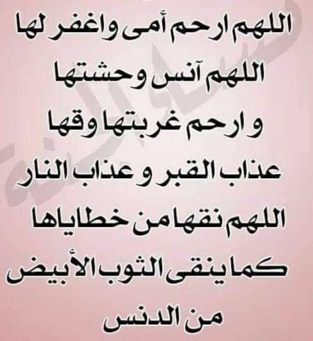 - اللهمّ افسح له في قبره مدّ بصره، وافرش قبره من فراش الجنّة، اللهم ارحم امى امينه كامل حجازى ولا تطفئ نور قبره، يا قيوم أقمه على نور في قبره، ومستبشرا بحسن إجابته وتثبيتك إياه عند السؤال.